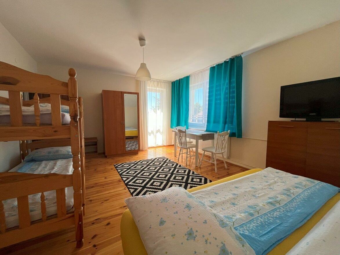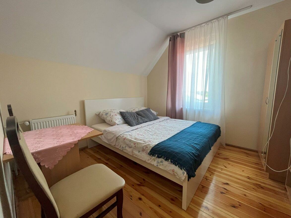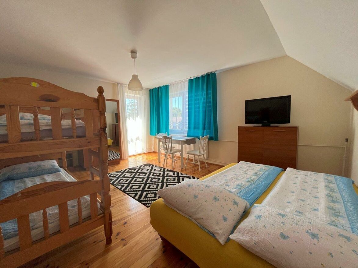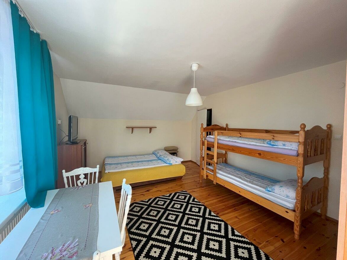 Dom posiada funkcjonalne rozwiązania gdzie część mieszkalna właścicieli nie koliduje z wynajmowanymi pokojami.