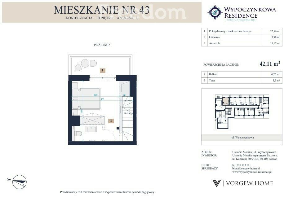 Opis lokalu M43Kondygnacja: III piętro + antresola